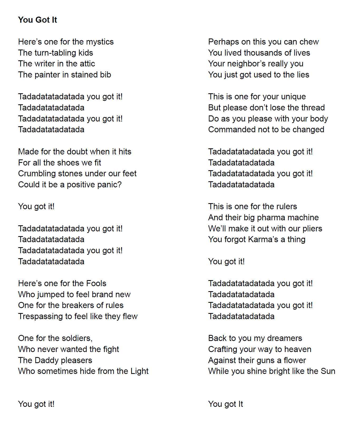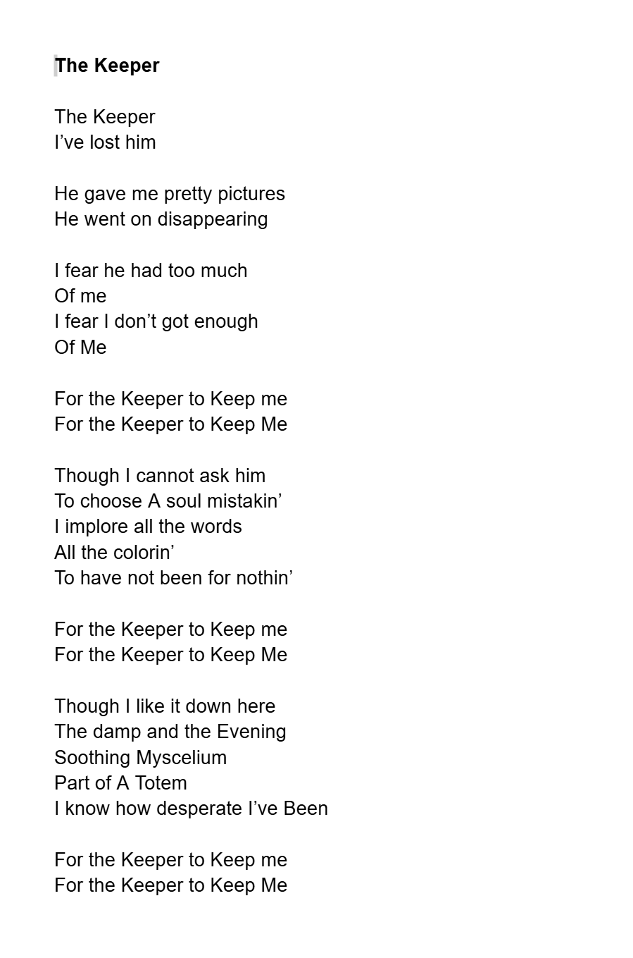 Below are the lyrics to these + a couple more recent poems + songs that still need melody.