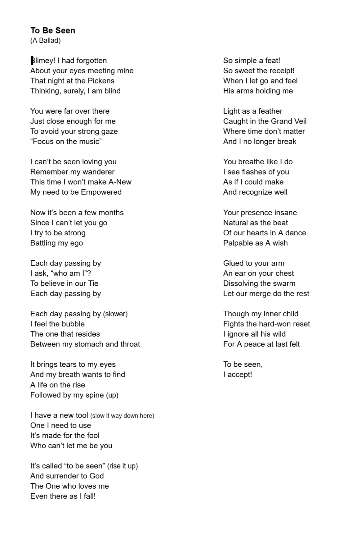 Today, and as we approach the end of my shares for the time being, I ve shared two more poems above, “Waking” and “More Than Rigid” and also wanted to send a small home recording session where I sing along with some of my favorite artists. It’s still very undaring singing but it is fun after all.