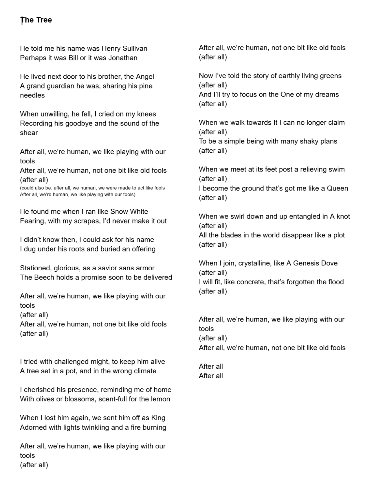 Below are the lyrics to these + a couple more recent poems + songs that still need melody.