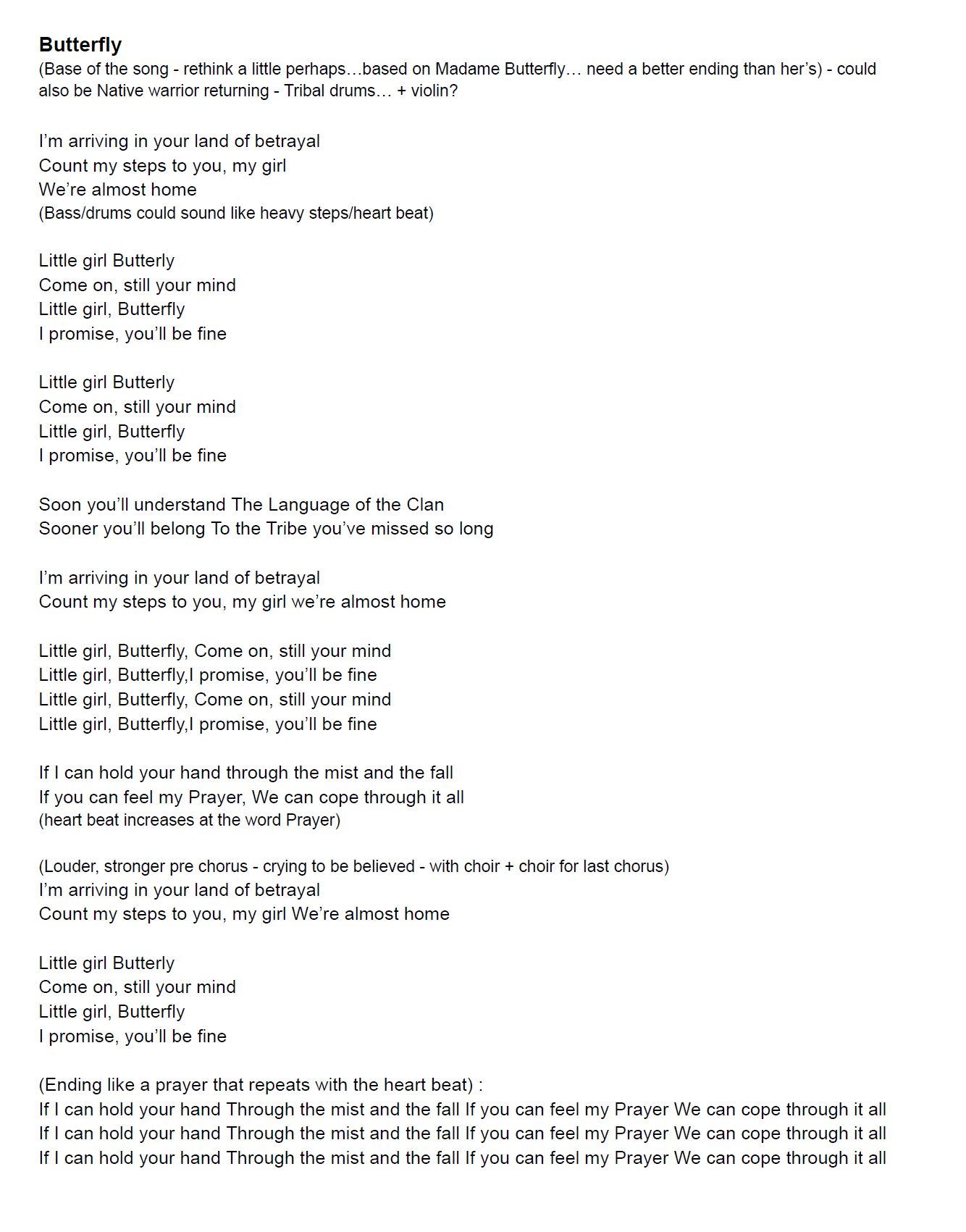 Here are some more songs I’ve written, Waterfowl, The Tree, The Fog, and De Toi. I’m thinking of The Fog in particular for you but the others are also available, and I wished to share them. The longer ones need a little more work I believe and I’d love to see what you would do with some of the songs I’ve sent so far.